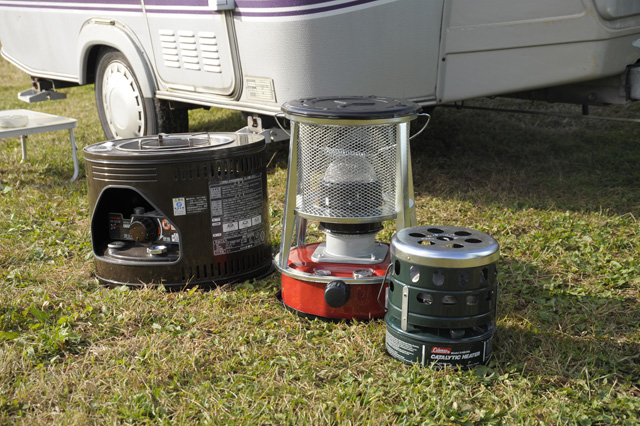これまで個人的には、コールマン製の大昔のテント内で使用するためのキャタリティックヒーターをトレーラー内で愛用。今の基準ではもちろん室内使用は不可のもの。さらにサイドオーニングやタープ下では、調理のできるトヨトミ製ストーブや通常のカセットタンク給油式のものを使用していた。それはそれで、暖をとるという点で十分機能していたように思う。