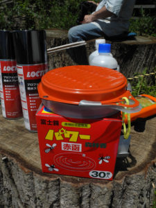 お手軽なのは、防虫効果の成分が入ったパラフィンオイルが発売されているので、それをテーブルランタンとして点けっ放しにしておくこと。満タンにすれば丸1日程度は燃焼し続けてくれる。