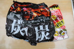 バーベキューで最も便利だと最近感じているのが、ホームセンターなどでも取り扱っていて数百円で売っている使い捨てのテーブルコンロ。燃料、着火剤、網、アルミのコンロ本体が一体のもので着火も簡単、掃除いらずで捨てるだけでお手軽。だが、なんと百円ショップで0.5kgパッケージや着火剤がワンコイン…、この圧倒的な価格破壊的要素はちょっと見逃せないとも感じている。そこで高級炭ではなく、それを用意しテストしてみる事に。