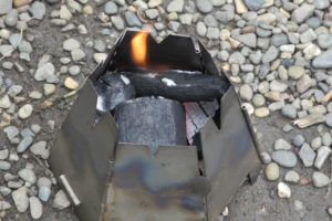 まず間違いなく成功するだろうと思われるのが、ウッドストーブ。写真はバーゴ製のもので、上部が絞ってある分火の点きが良好な形状をしている。個人的にはソロキャンプで多用しているもので、焼き物をする時ひっくり返して底板を鉄板代わりに使用するというマニアックな要素を持たせるため重量はかさむがステンレス製、そんな用途には軽量で便利なチタン製はいま1つ向いていない。