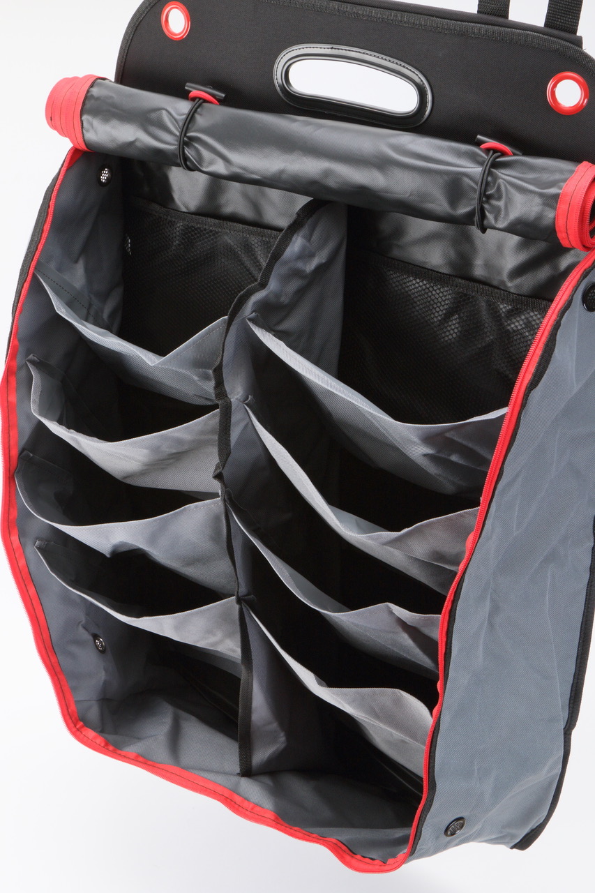 ●靴入れとして作られたソフトケースでポケットは10か所。ファスナー付きのカバーを掛けられます。