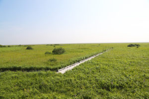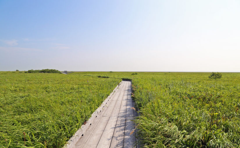 広大な北海道ならではの魅力のひとつは、見渡す限りの地平線を眺められるスポットが点在していることです。数あるスポットの中でも道内屈指のスケールを誇っているのが、道北エリアの「サロベツ湿原」。利尻礼文サロベツ国立公園に指定され、ラムサール条約にも登録されている高層湿原です。広さは6700ha で、東京ドームに換算すると約1400個分! 高層湿原としては、日本一の面積を誇っています。
