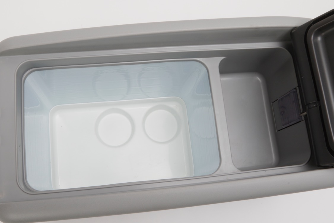 冷蔵庫の幅はわずか260mmなので、運転席と助手席の間や、セカンドシートの足もとなどのスペースにぴったり収まる。