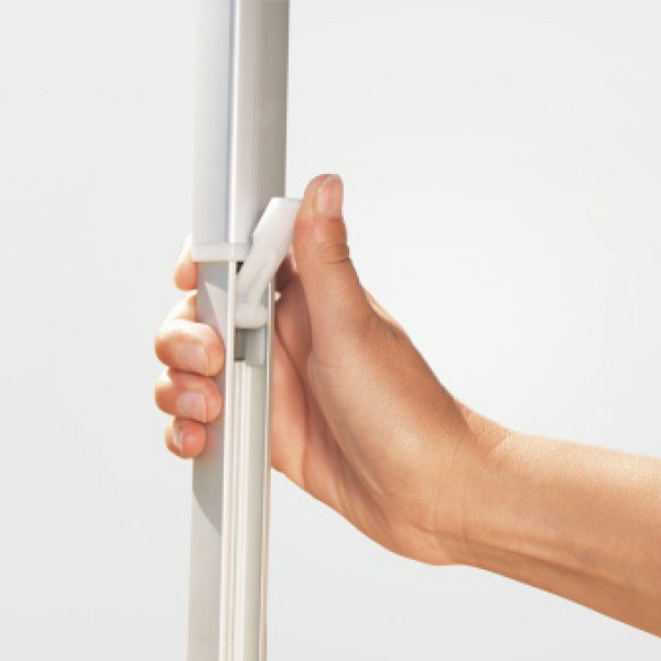オーニングを支える脚の長さはワンタッチで操作でき、イージーロックとして特許を取得している操作性に優れたもの。オーニング生地は四層構造で丈夫に作られていて雨のしみこみを防ぐ。
