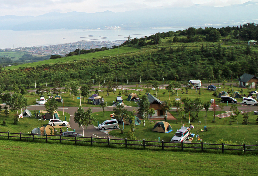 サイトからの素晴らしい景観は、道内の数あるキャンプ場の中でもトップレベル! 空気が澄んだ日には、美しく整備された芝生のキャンプサイトから日本海と積丹半島をくっきりと見渡すことができ、夜になると水平線にずらりと並ぶ漁火と満天の星空が織りなす、幻想的な夜景を堪能することができます。