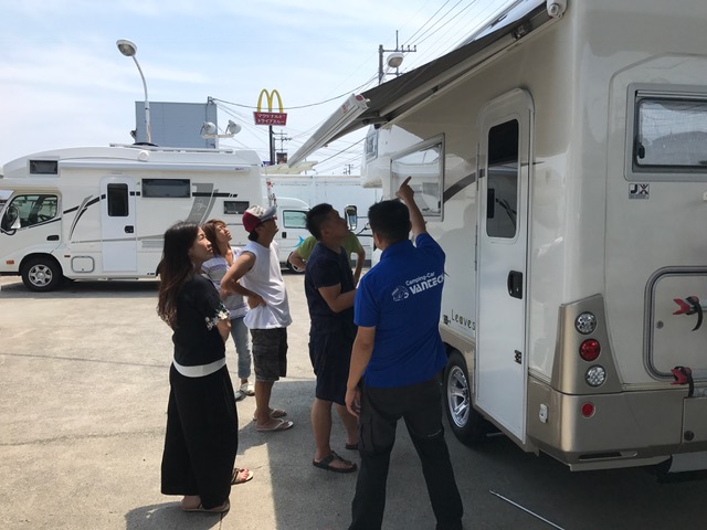 試乗の後は、なにやら皆さんで相談会ですかね!!オーニングにLEDライトを取り付けるお話しで盛り上がっていました。仲間で情報交換出来る事も、とても大切な事ですね!!真剣に考えてる姿は、ちょっと羨ましいかな〜、又、お会いしましょうね〜!!