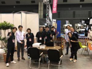 2018年度の展示会が、幕張を皮切りにスタートします。朝早く大勢のスタッフがバンテック本社に集まり、10数台の展示車両に乗り込み、幕張を目指して出発します。朝が早く、夜明けと共に出発となりましたが、朝の弱いスタッフには少々辛いですかね〜