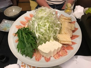 初めて食べてみました? しゃぶしゃぶは色々ありますが、上の写真は、なんとカジキのしゃぶしゃぶです。この時期なので、ブリのしゃぶしゃぶなら解るのですが、カジキ? 味は鳥肉に近い味で、山盛りのネギと出汁のきいたスープとの相性は最高でした。シメは、麺とご飯で仕上げて、お腹いっぱいになります。みんなで食べる鍋は、話も弾み楽しいですね!! 博多は最高です!!