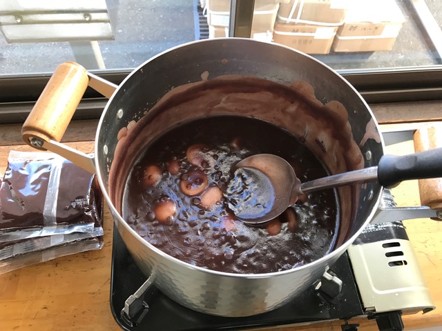 毎年、恒例らしいですが、店長が作る特製おしるこです。見ているだけで、口の中が甘〜くなりますが、1/6土曜日〜8月曜日まで、限定で用意してお待ちしています。食べてみたいという方は、是非!! 埼玉店へ、無くなったらごめんなさいね〜!!