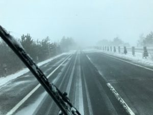 東北道をひた走り、青森目指し走っていましたが、予想がつかない程の強風が雪を巻き上げ、目の前がホワイトアウト状態に、、、映画やテレビでは見たことは有りましたが、実際に自分が遭遇すると、死んでもおかしくないかなと思える程でした。強風が吹くとフロントガラスから先は見えませんでした。後続車が来ないかとヒヤヒヤで、右も左も方向が解らなくなります。