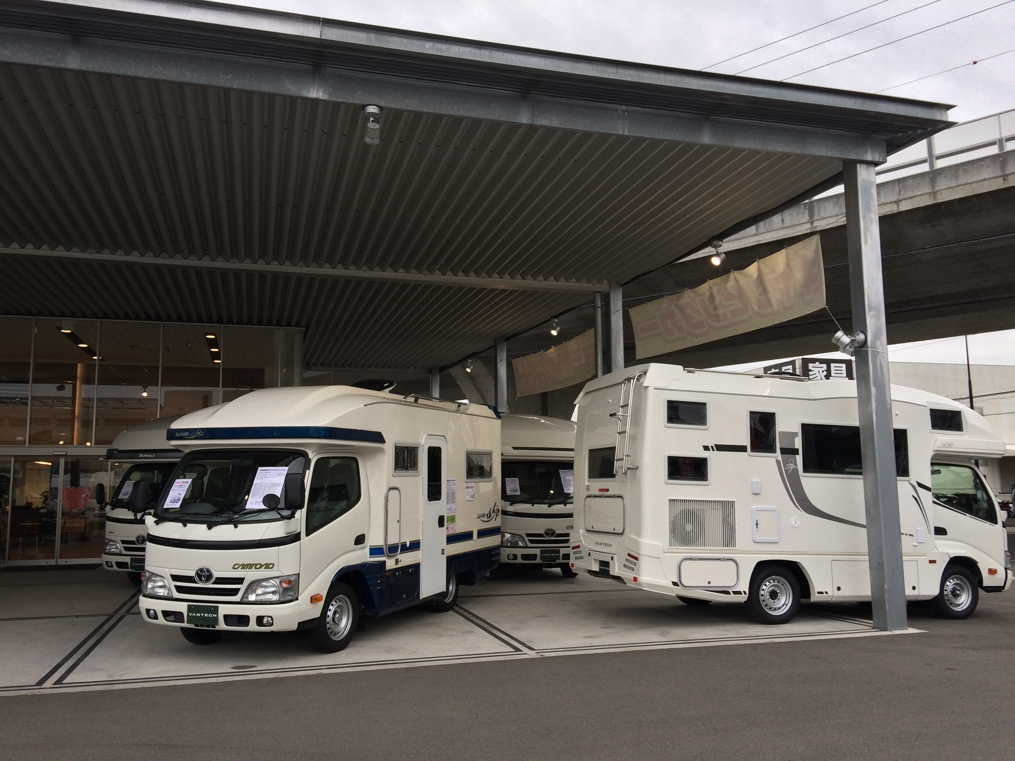 ズラッと綺麗に並んだバンテックのキャンピングカー達を