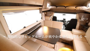 また運転席上部には、スライドをするだけで1860×1830のベッドに早変わり。
